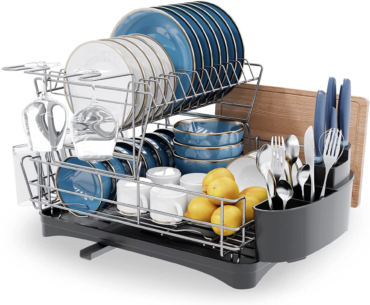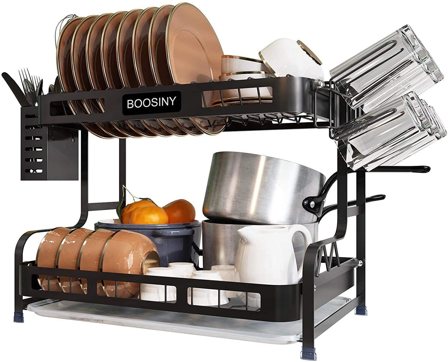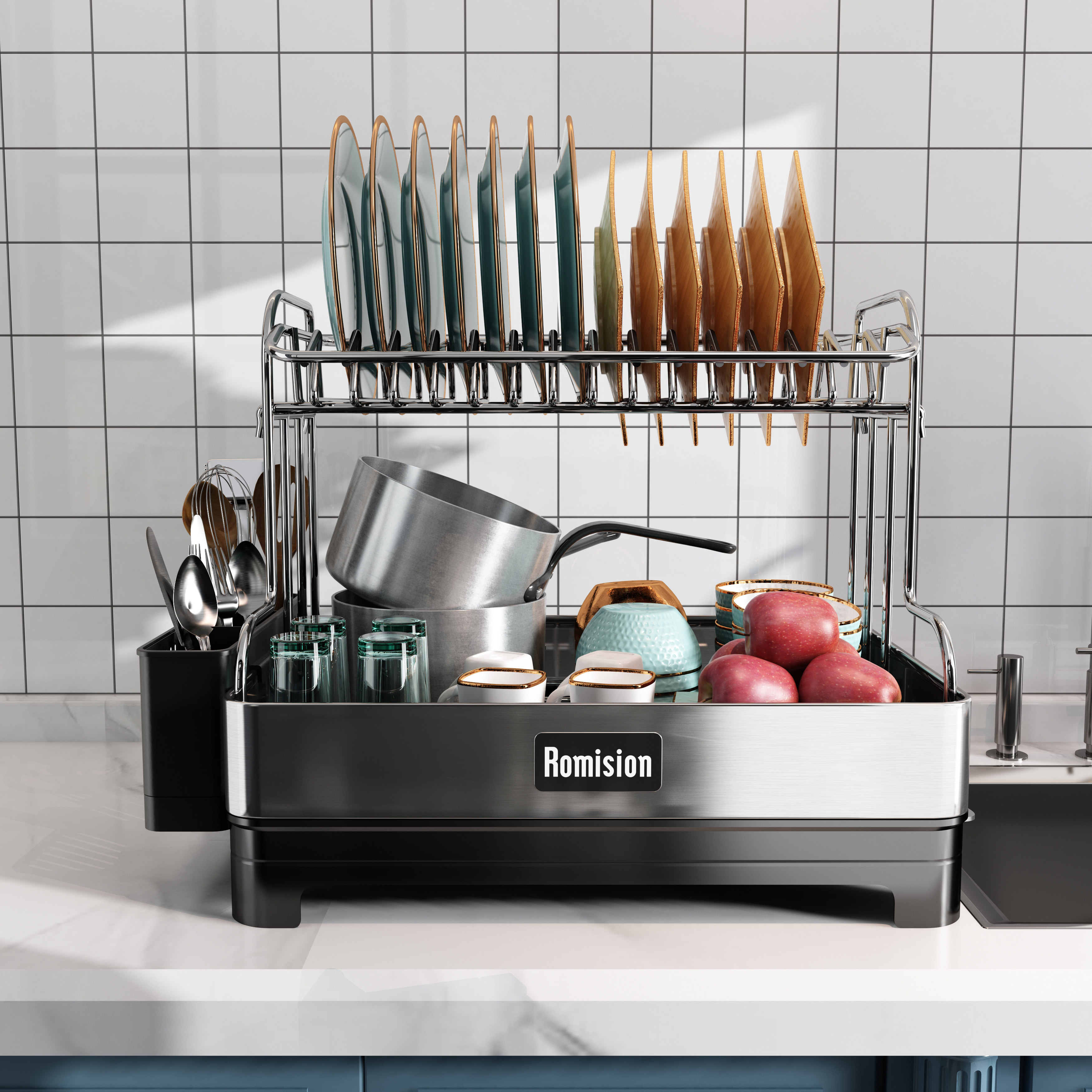 Stainless Steel Large Dish Drying Rack,MOUKABAL 2 Tier Dish Rack and Drainboard Set,with Utensil Holder,Cutting Board Holder,Cup Holder,Dish Drainer for Kitchen Counter (Silver) 4.2 out of 5 stars. 93. $39.99. $39. 2 Tier Metal Dish Rack. by Alex Smart Home. $40.51. 20. Rated 4.5 out of 5 stars. 20 total votes. Free Shipping. This product is equipped with a utensil holder, cup holder, cutting board holder, and dish drainboard, this dish rack will make your tableware neatly. The dish drainer is removable. Toolf Dish Rack and Drainboard Set, Extend Large Dish Drying Rack with Swivel Spout for Kitchen Counter or Sink, Expandable Dish Drainer Rack with Utensil Holder and Cup Holder. 4.3 out of 5 stars. 326. $49.99. Our Upgraded 2 Tier Dish Drying Rack with Drainboard-Helps you save 80% of your kitchen counter space.our 2 tier large dish drying rackUpgraded Innovative Drainage System.High Quality - The heavy duty and rust-proof metal with durable rustproof nano-coating make it suitable for kitchen tableware, glassware and so on.Dish drying rack for kitchen ...