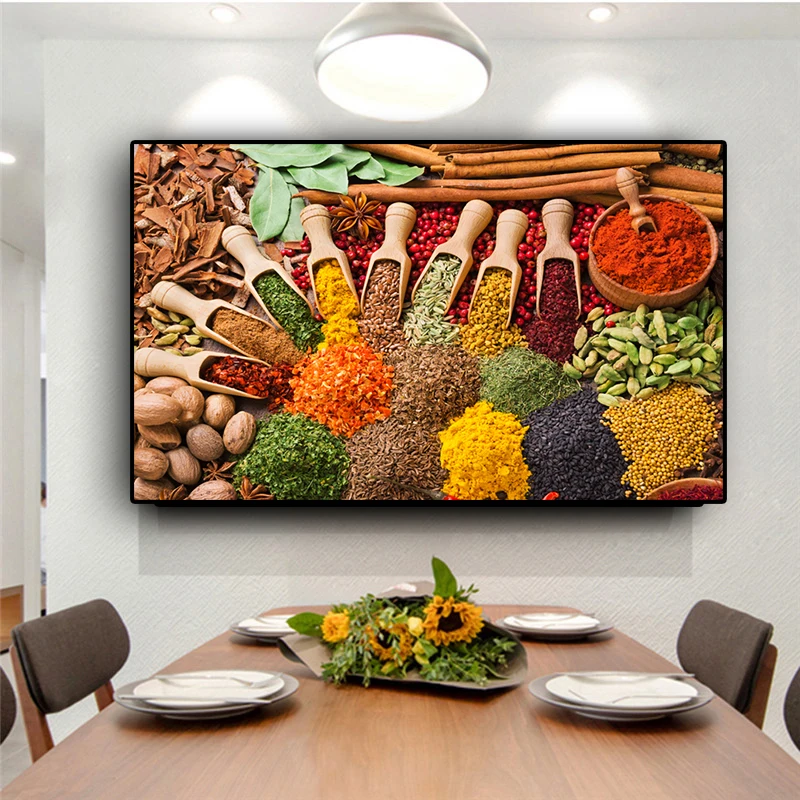 Kitchen WALL ART. The kitchen is the heart of your home and a place where you cook, dine, and interact with your family. Incorporating bright, vibrant colors can also stimulate the appetite! Give your kitchen the attention it deserves with yummy canvas prints! Spices. Coffee. Fruits And Vegetables. Farm Kitchen.
