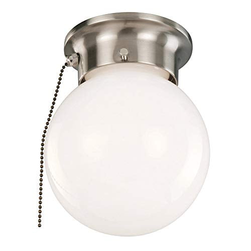 Design House 519272 Traditional 1 Indoor Ceiling Mount Globe Light Dimmable for Bedroom Dining Room Kitchen, Pull Chain, Satin Nickel
