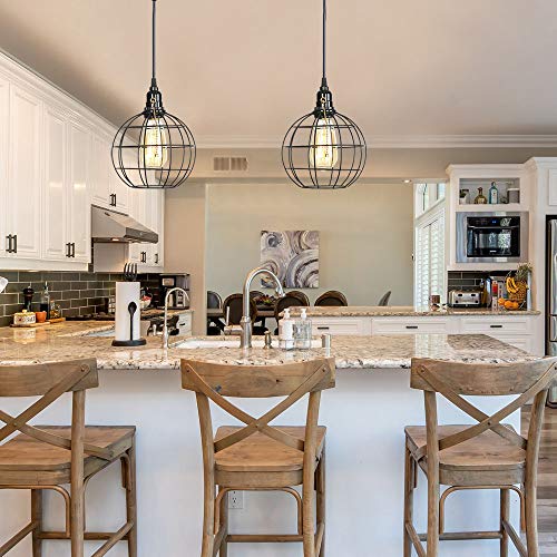 Industrial Farmhouse Pendant Light On Off Pull Chain Black Finish Hanging Light Fixture Hand Blow Clear Glass Shade and Adjustable Height Cord Pull ...