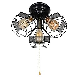 Baiwaiz Industrial Close to Ceiling Light with Pull Chain, Black Metal Wire Cage Semi Flush Mount Ceiling Light Pull String Light Fixture 3 Lights ...