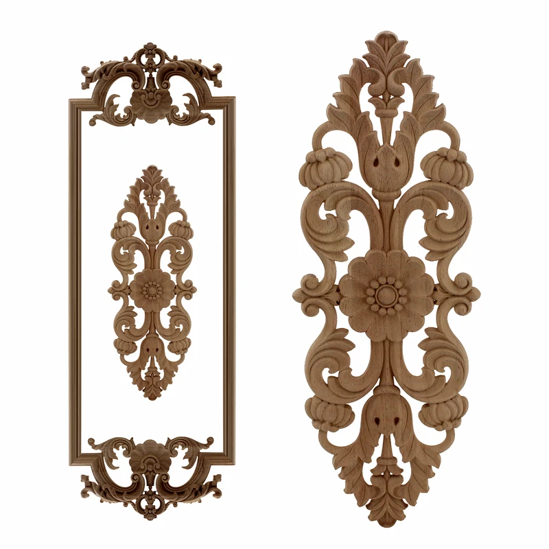 Healifty Wooden Carved Onlay Applique Unpainted Carving Wood Door Cabinet Cupboard Furniture Decoration M Description This wood carved onlay is made of premium wood. It is a art craft rather than a bed decor. Well carved pattern looks beautiful and shows your temperament well. Exquisite carved patterns looks beautiful and amazing.
