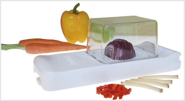Brieftons QuickPush Food Chopper: Vegetable Fruit Dicer Slicer, Onion Tomato Potato Fries Cutter, 3 Extra-Large Blades with 200% More Cut. Sold by Bargain Unlimited. $83.61 $34.61. Vivaant Food Chopper - Manual Slicer Dicer Mincer - Time Saver For Vegetables Salads Onions Garlic Nuts And More - Commercial Qu.