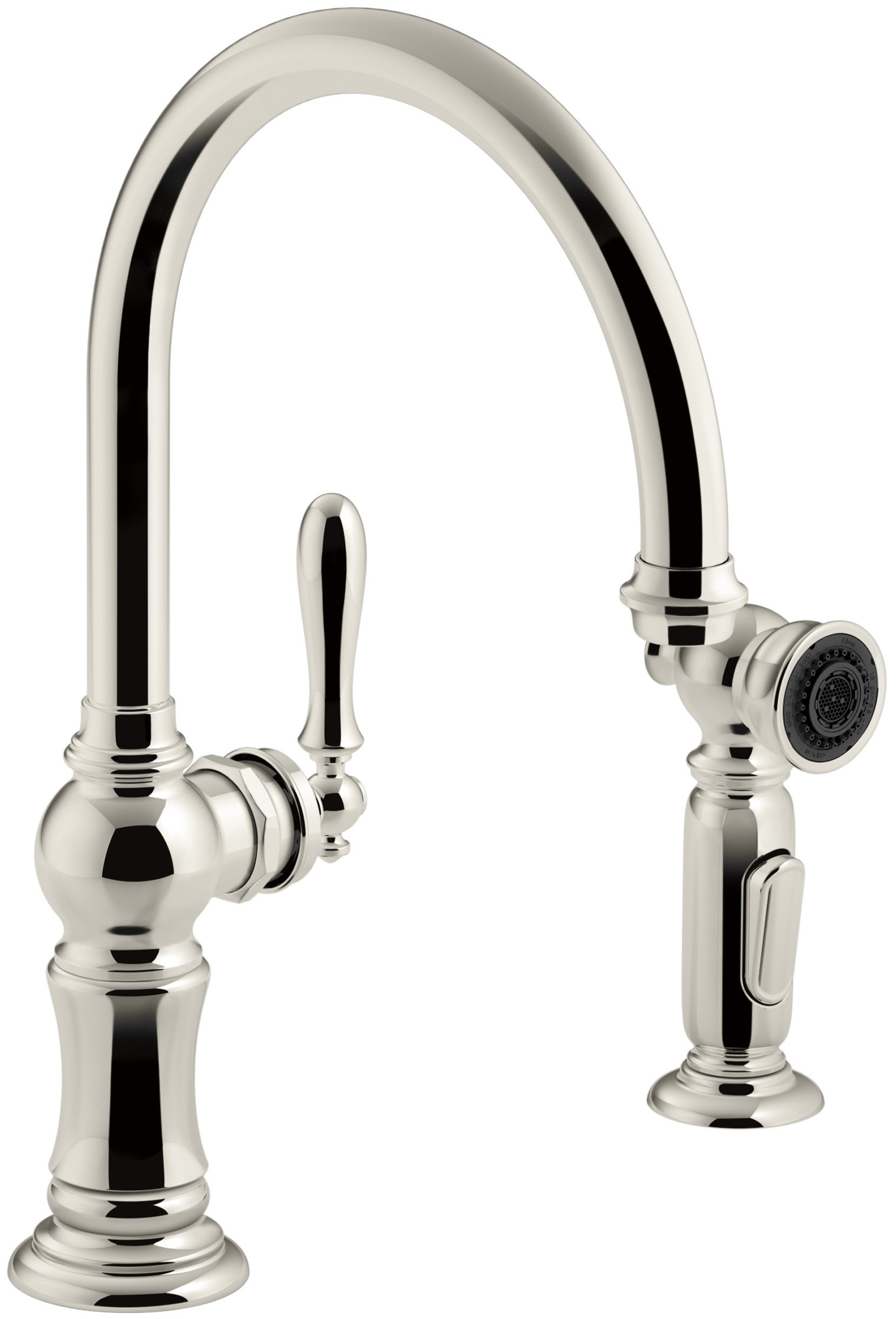 KOHLER Artifacts Single-Handle Standard Kitchen Faucet with Victorian Spout Design and Side Sprayer in Vibrant Polished Nickel-K-99265-SN - The Home ...