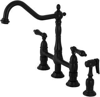 Broderick ™ Collection. The powerful features of the Broderick ™ Collection take center stage in the kitchen, with an industrial style that alludes to a rich heritage. The collection includes distinctive bridge faucet and pull-down spring spout faucet options that add a unique element to any kitchen. Waterhill 2-Handle High-Arc Side Sprayer Bridge Kitchen Faucet in Wrought Iron Vintage, farmhouse-fresh and full of character: Vintage, farmhouse-fresh and full of character: the Waterhill collection of kitchen and bar/prep faucets from MOEN brings provincial elegance to today's more traditional homes. Available in a variety of finishes to suit your decor, the Waterhill 2-Handle Bridge Kitchen ...