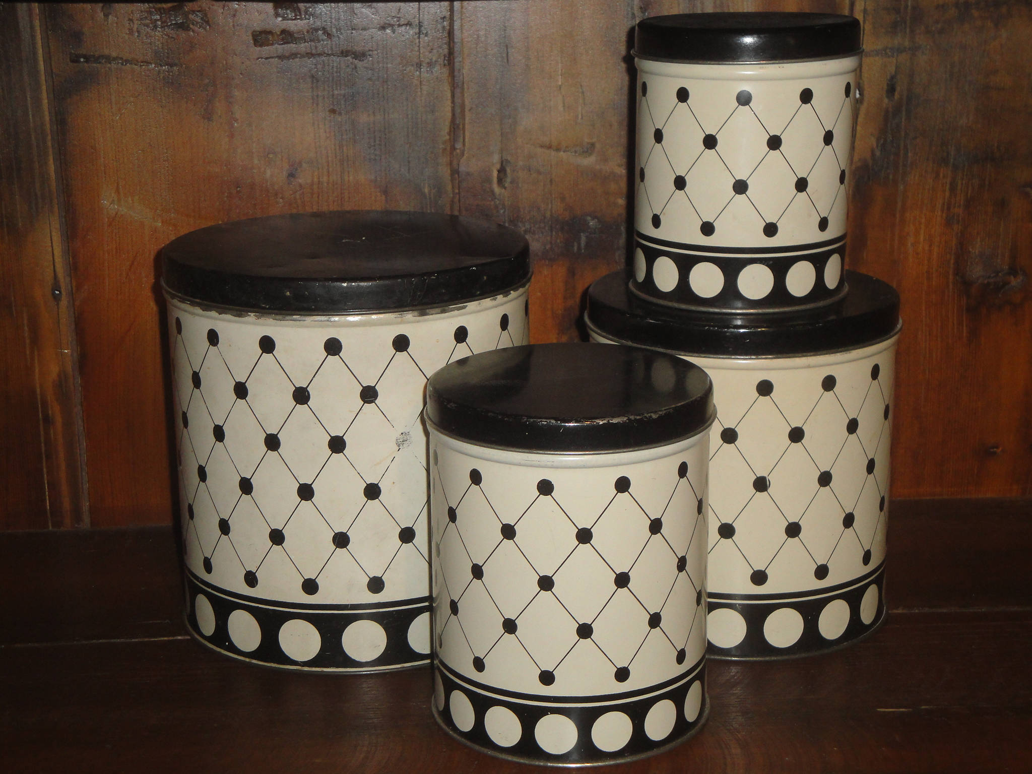 Old Tin Canister Set | Vintage Black and White Canister Set | Antique Canister Set | Farmhouse Kitchen Canisters