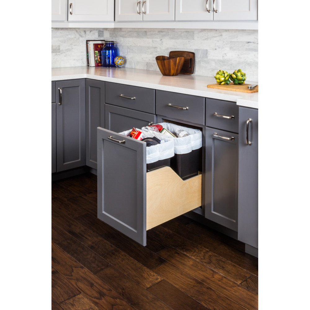 Rev-A-Shelf RV-15KD S Double 27 Quart Sliding Pull-Out Waste Trash Garbage Bin Container for Base Kitchen Cabinet with 11-Inch Opening. Rev-A-Shelf. 4.8 out of 5 stars with 21 ratings. 21. $71.99 - $89.99. Kitchen Garbage Can, Wood Garbage Can, Dog Proof Trash bin, office, Garbage Container, Wood Kitchen Storage, Wood Dog Food Bin. SimplyRusticWorks. 4.5 out of 5 stars. (142) $180.00 FREE shipping. Add to Favorites. Double Tilt out rustic trash bin/ tilt out laundry bin / Farmhouse style trash can / Wooden flip out trash can /Rustic kitchen garbage can Ad by ChristianFredricks Ad from shop ChristianFredricks ChristianFredricks From shop ChristianFredricks. 5 out of 5 stars ... Double Trash Bin, Tilt Out Door, Wood Trash can, Recycle Bin, Unfinished, Two 10 ... Tilt Out Double Wood Trash Can & Recycle Bin (11 Color Choices, 2 Sizes). Keep your garbage securely out of sight with this handmade double tilt out trash can. Has a nice area on top for canisters or food preparation. With solid Pine its sure to compliment any decor. Each bin is hand crafted by wood crafters. Made in the USA.