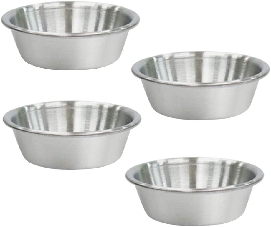 4Pcs Mini Dipping Saucer Bowls, Stainless Steel Sauce Dish, Souffle Cups, Metal Ramekins, for Small Portion Spice Condiments, Prep, Side Dish, Salad ...