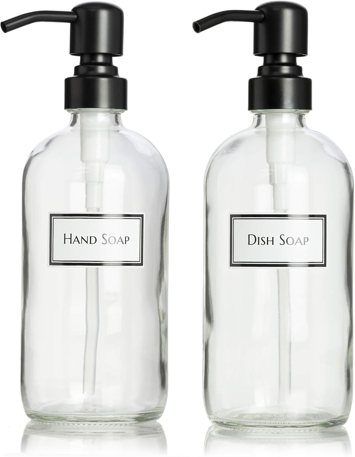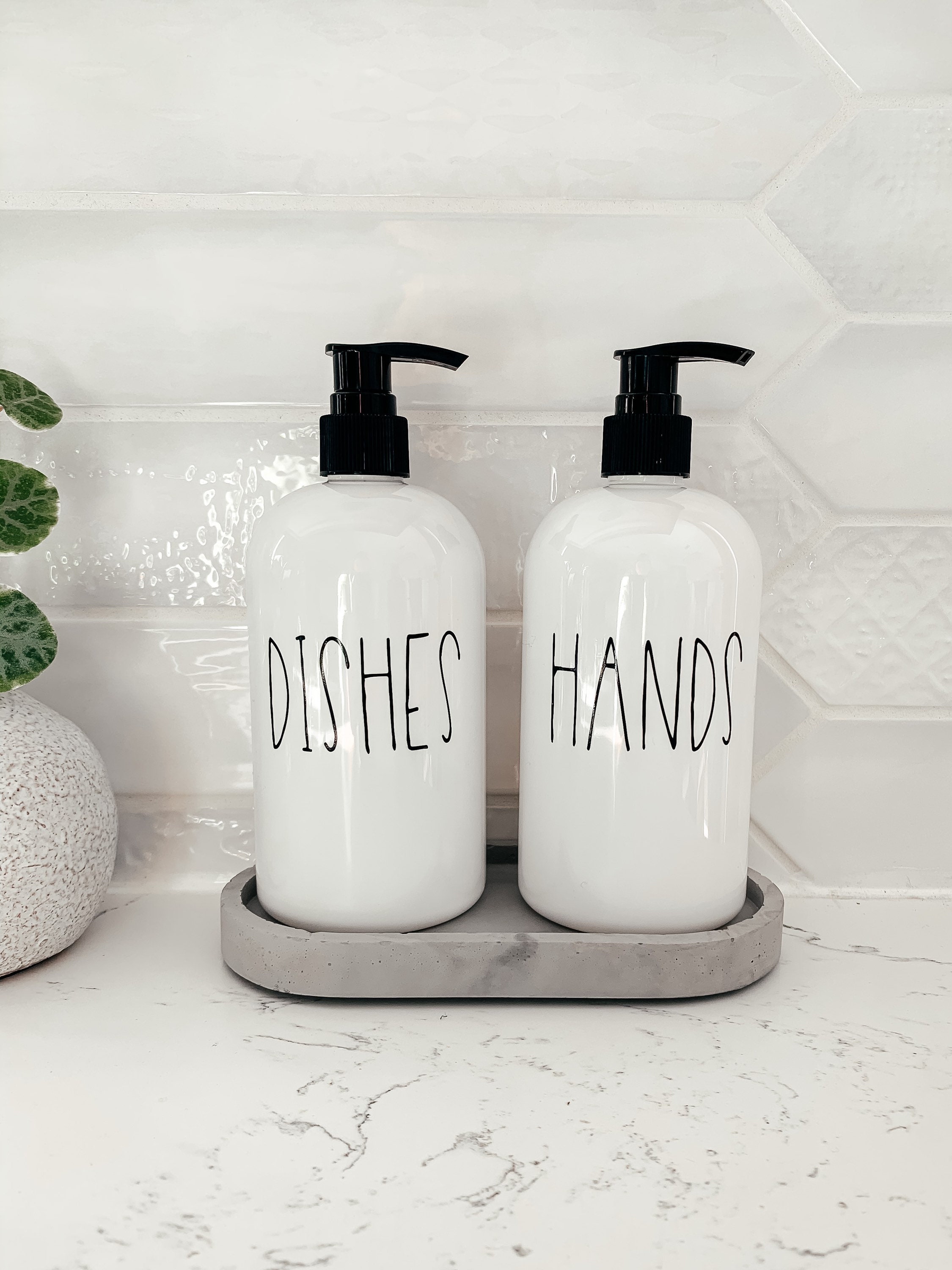 Dishes and Hands Soap Dispenser Set â Farmhouse Style Ceramic Liquid Dispenser Bottles, Perfect for Kitchen Counter or Kitchen Sink Décor (16oz, White ...