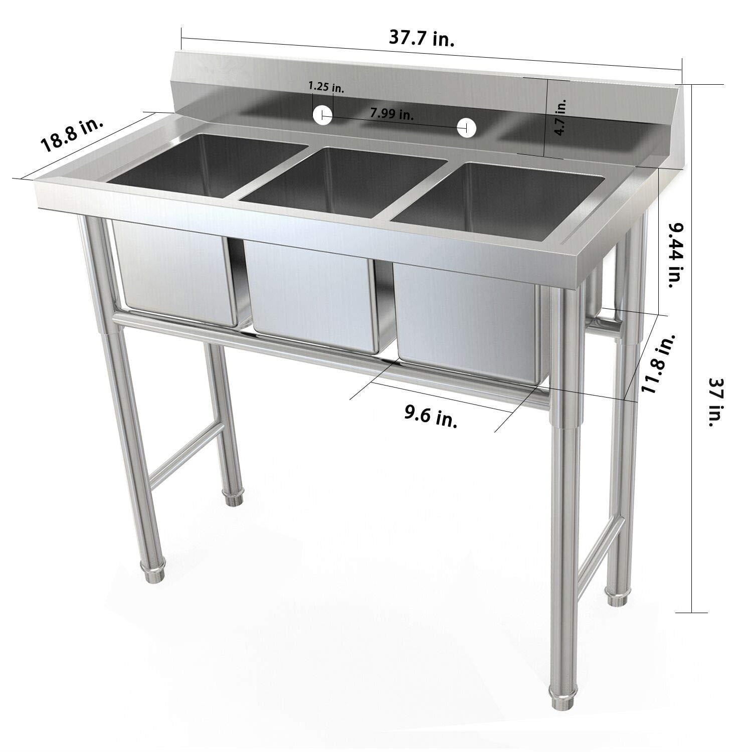 Ktaxon Freestanding 39" 3 Compartment Commercial Stainless Steel Sink, Silver, for Laundry Room, Kitchen