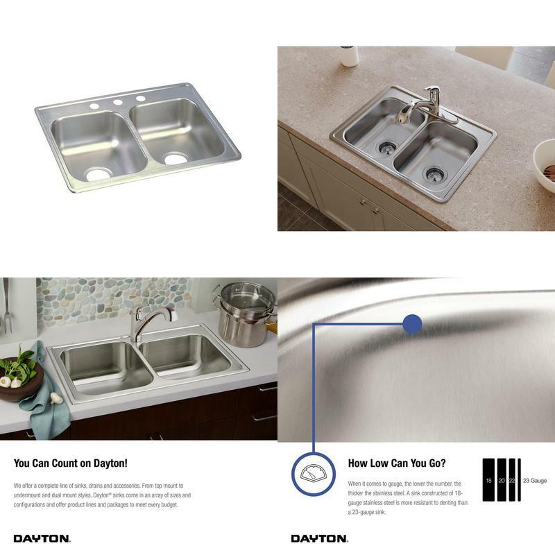 The Premier drop in kitchen sink is made of durable 22-Gauge brushed stainless steel. The sink's two basins provide long-lasting use, and they are conveniently split for multitasking. Sound insulation reduces waste disposal and water noise to help keep your kitchen quiet while you work. 3-hole double bowl drop-in sink; 22-Gauge stainless steel Amazing 60 Inch Kitchen Sink Base Cabinet Ideas. For the unfamiliar a standard base cabinet is 36-inches high and 24-inches deep. Base cabinet f sink waste sorting 30x24x30 177. Ariel 60 inch double sink vanity base cabinet in grey 4 soft closing doors 6 full extension dovetail drawers 60 x 21 5 x 33 5 inches 4 6 out of 5 stars 6 844 00 844. Elkay Swift Install All-in-One Drop-In Stainless Steel 33 in. 4-Hole Double Bowl Kitchen Sink Kit. Similar eBay Listings. UPCs related to 094902075693. ... UPC 094902008615. Elkay D225193 Dayton 25-Inch by 19-Inch Stainless Steel UPC 094902008332. Elkay D115151 Dayton 15-Inch by 15-Inch Stainless Steel UPC 094902447766 ...