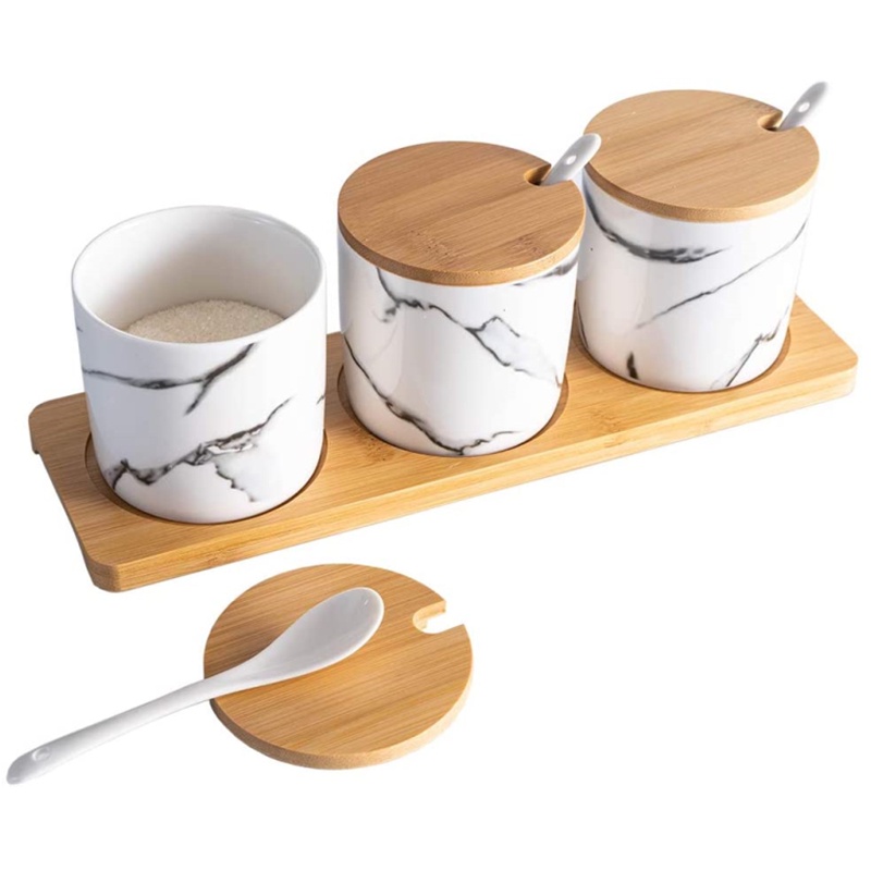 Bruntmor 3 Pcs Kitchen Canister Set, Coffee, Sugar, and Tea Storage Jars, Ceramic Spice Container with Bamboo Lid And Spoons. Details. Free Shipping. 33. See Price in Cart. 4. Ambrose Exquisite Tea, Sugar, Coffee Canisters with Tray in Gift Box. Details. Free Shipping. Top Rated. 107. $38.99. 8 ...