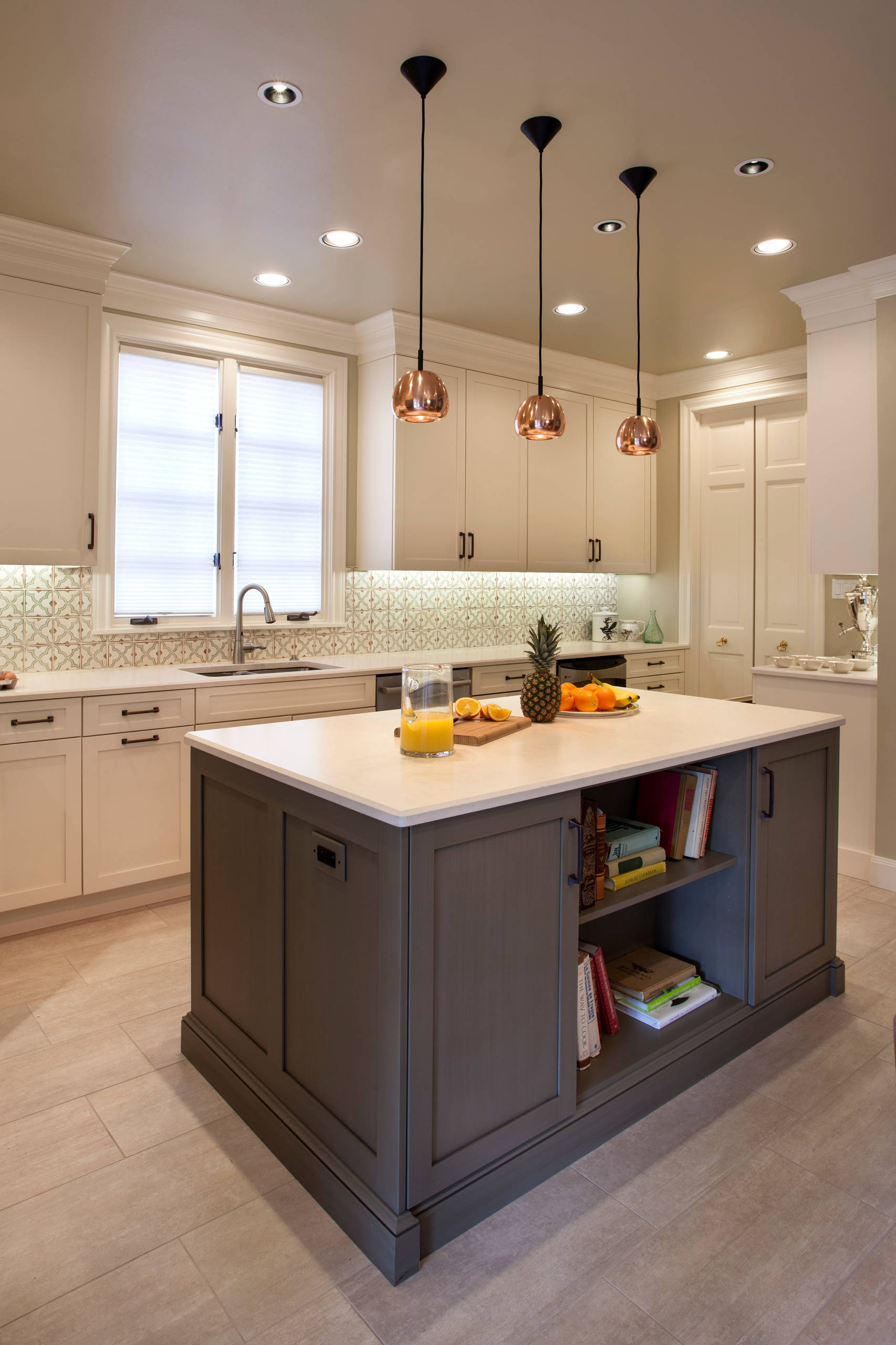 Kitchen islands with open shelves provide a perfect canvas to showcase your cookbooks beautifully while combing them with some decorative pieces. This is a trend that is catching on in most contemporary kitchens, with sleek open shelves at the front being filled up with colorful books that add a hint of uniqueness to the space.
