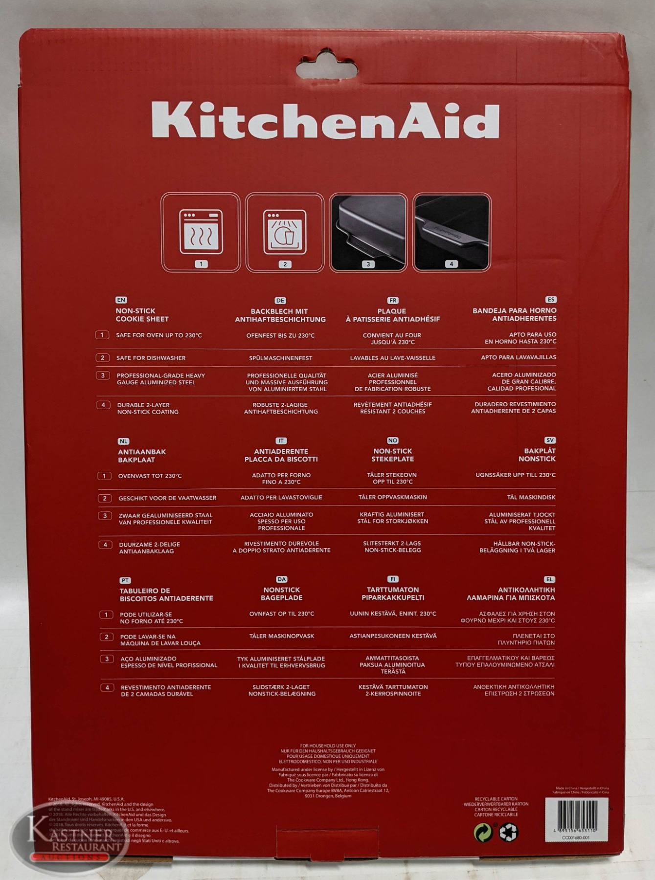 ITEM Kastner Auctions / KASTNER AUCTIONS / NEW KITCHEN AID NON-STICK COOKIE SHEET 45 X 35. 1520 NEW KITCHEN AID NON-STICK COOKIE SHEET 45 X 35. Currency:CAD Category:Business & Industrial Start Price:NA Estimated At:NA. SOLD Winning Bid Undisclosed. This item ... With KitchenAid's Nonstick 10" x 15" Baking Sheet, you can roast veggies, bake cookies, and cook up other delicious recipes. Made of high-quality heavy-duty aluminized steel, this baking sheet distributes heat evenly across the surface for consistent baking. KitchenAid 13"x18" Aluminized Steel Nonstick Cookie Slider Sheet. $16.99 . KitchenAid 9" Aluminized Steel Nonstick Round Cake Pan. $19.99 . KitchenAid 9"x13" Aluminized Steel Nonstick Cake Pan. $13.99 . Wilton 9"x13" Nonstick Ultra Bake Professional Baking Pan with Cover. $8.99 .