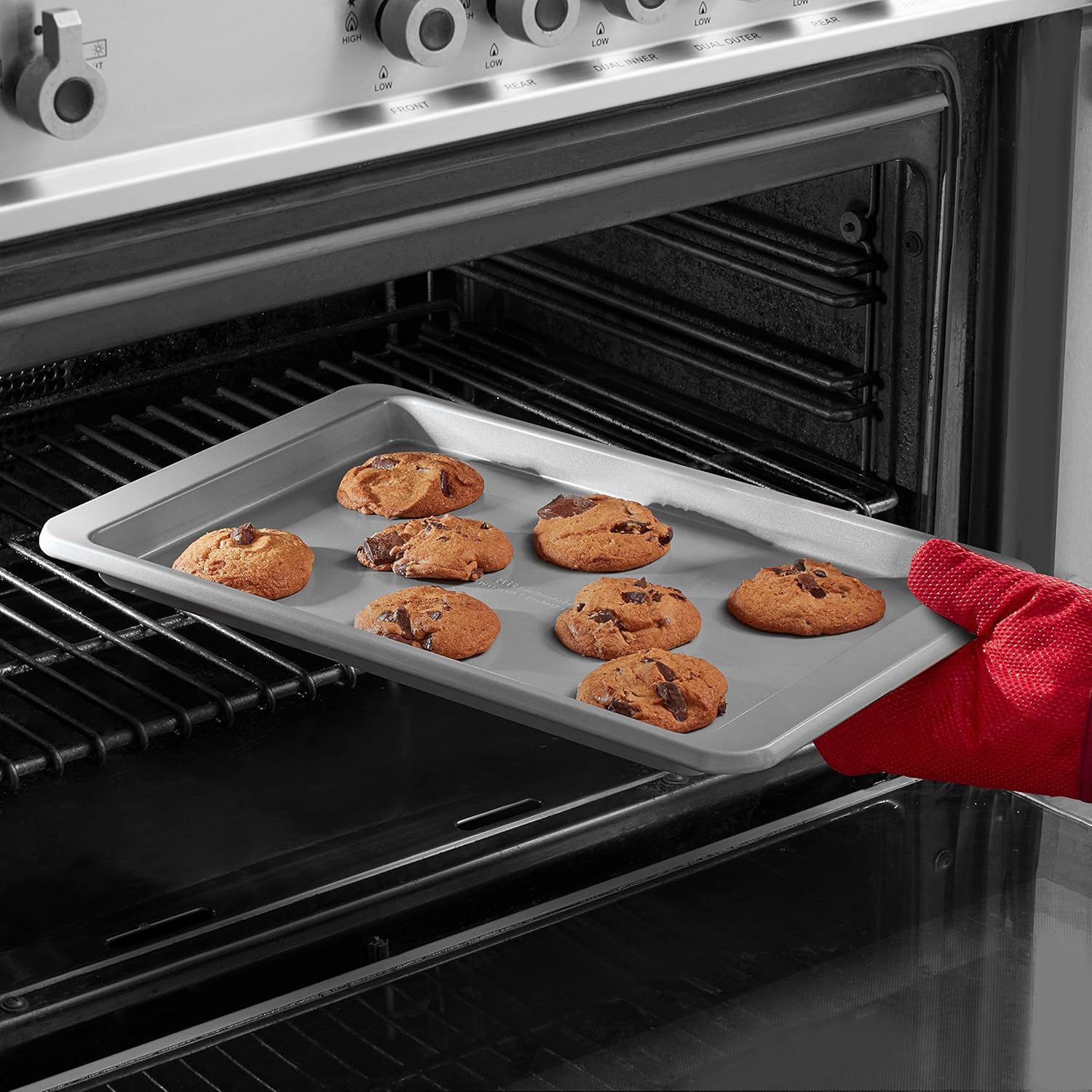 I skipped this step for my cookies since we all know that warm pan + cookie dough = flat cookies, so I scooped the dough onto cool cookie sheet (lined with parchment paper to prevent sticking) and popped it in the preheated Microwave Oven. For subsequent batches, let the pan cool slightly before scooping on more dough. The large cookie sheet is designed without rims, but it has a single raised edge that makes it easy to grip. The ridged silicone surface, which is BPA-free, makes for a clean, even bake that "renders consistent, excellent results," as one customer describes. It's no wonder this heavy-duty option has a near-perfect 4.8-star rating overall out of ... This KitchenAid 9x13 Sheet Pan is essential for making cookies, jelly rolls, bars, plus one-pan meals, roasted vegetables, and more. The pan is designed with extended handles, which provide a secure grip when lifting in and out of the oven, even when using thick and bulky oven mitts. For order, account issues, or specific item inquiries, please contact us. KitchenAid : Cookie Sheets. A must-have for your bakeware set, upgrading to a perfect baking sheet can help simplify meal prep & reduce baking time. The simplest of kitchen tools, a baking sheet can be super useful. Whether you’re whipping up a batch of cookies for dessert or cooking up veggies as a side dish, cookie sheets will make the task easier.