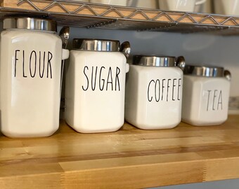 Kitchen canisters that blend function with style. Check out our great selection of 4-piece canister sets. Apply for credit today and buy now, pay later. Farmhouse kitchen canisters often come in a set of three and can be used for sugar, tea, and coffee. Farmhouse kitchen canisters can also come in various shapes and sizes. Farmhouse kitchen canisters can be round, rectangular, or square, providing variety to suit all your kitchen countertop storage needs. Kitchen Canisters With Bamboo Lids, Airtight Metal Canister Set, Coffee, Sugar, Tea, Flour Storage Containers, Farmhouse Kitchen Decor, Black, 5.25” X … Canister Sets for Kitchen Counter - Matte Black Kitchen Decor and accessories - Sugar Containers for Countertop - Flour Sugar Canister Set - Sugar Jars for Kitchen - Kitchen Canisters Set of 4. 4.6 out of 5 stars 470. $39.98 $ 39. 98. Get it as soon as Wed, Feb 9. FREE Shipping by Amazon.