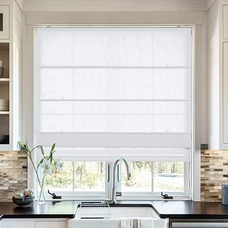 ChadMade Customized Roman Shade Faux Linen Roman Shade with Loop Control Kitchen Window Door Roman Shade Blackout Lighter Filtering, 0 Snow White, Liz ...