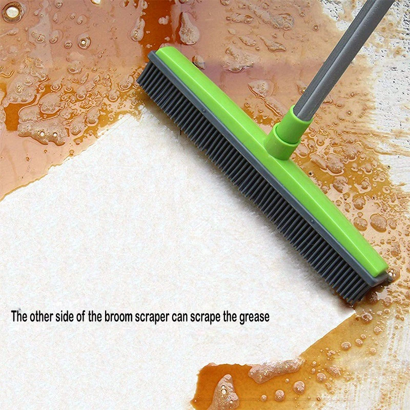 Rubber Broom Carpet Rake Pet Hair Remover Broom with Squeegee Extension Push Broom for Carpet Hardwood Floor Tile Windows Cleaning
