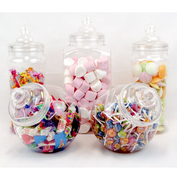 Set of 3 XL Round Candy Buffet Jars | Candy Jars | Candy Buffet Jars | Candy Buffet | Baby Shower | Birthday Party| Wedding|Graduation Party TurquoiseRoseDesigns 4.5 out of 5 stars (165) $ 51.00. Add to Favorites 12 Apothecary Candy Jars 3.75"H x 2.25"D / Acrylic Candy Jar Favors / Candy Jar / Candy Container ...