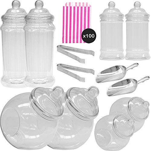 Candy jars for candy buffet. Candy buffets. The hunt for the perfect candy jar or candy container begins. Fulfilling your vision of the perfect candy buffet and it's contents might become a daunting task. You can purchase new candy jars and containers for your candy buffet or if you have time, (many months before your wedding) you can be "on the lookout" for your candy jars or containers. Set of 3 XL Round Candy Buffet Jars | Candy Jars | Candy Buffet Jars | Candy Buffet | Baby Shower | Birthday Party| Wedding|Graduation Party TurquoiseRoseDesigns 5 out of 5 stars (166) $ 51.00. Add to Favorites 12 Apothecary Candy Jars 5.25"H x 1.5"D / Acrylic Candy Jar Favors / Candy Jar / Candy Container ... This Selection Of Candy Buffet Supplies, Candy Jars, Candy Scoops And More Will Sweeten Your Event! Candy buffets are the hottest dessert trend around. Whether it's a wedding candy buffet, a sophisticated spread of Christmas party snacks or a luscious birthday party buffet, you want yours to be stylish, convenient and unique. Candy Jar, Candy Jars with Lids, Cookie Jar for Kitchen Counter, Plastic Candy Jars for Candy Buffet and Party Table, Candy Buffet Containers, Cookie Jars with Lids Set, Candy Holder, Clear Plastic Jars with Lids, 3 Pack, 48 oz