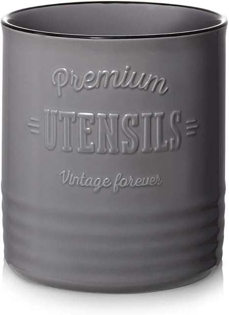 DOWAN Kitchen Utensil Holder, 7.2ⳠLarge Ceramic Utensil Crock, Industrial Style Kitchen Décor, Deep and Stable, Easy to Clean, Grey