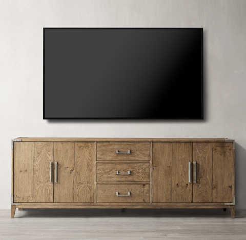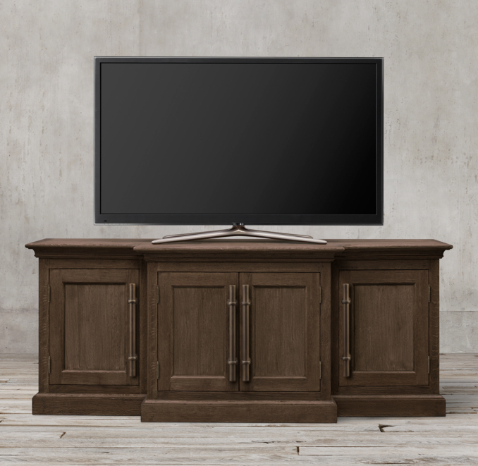 Restoration Hardware Monterey Open Media Console. View On Restorationhardware.com. As far as rustic-style furniture goes, this TV stand, courtesy of Restoration Hardware, easily wins top prize. Gorgeously weathered and stunningly textured, it features reclaimed peroba rosa wood (expertly curated from old barns and other structures) and looks ... Restoration Hardware Shagreen Glass 4-Door Media Console. Sold by Michelle. $750 | Est. retail: $3,630 | Qty: 1. Add to cart. Make an offer. ... Seller's Notes: Like new media console from restoration hardware! Still full price on RH. Brand: Restoration Hardware. Manufacturer Link: ... Eldon Steamer Trunk Media Console. $1899.0 Regular. $1424.0 Member. Inspired by classic steamer trunks, our collection's sturdy canvas-covered frame features hand-hammered nailheads, burnished-leather handles and decorative locks - authentic details with vintage appeal. SHOP THE ENTIRE COLLECTION. Callum Media Console. $1099.0 Regular. $824.0 Member. Defined by its clean, contemporary lines bordered by a beveled and mitered frame, our Callum collection is artisan crafted and hand finished for an authentically weathered appearance. SHOP THE ENTIRE COLLECTION.