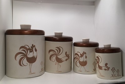 Rooster Canister Set - Sears Home Essentials Glass Canisters with Bail & Trigger Copper Rooster Lids, Set/3 Sold by GrowKart $36.68 $33.33 ZENS Glass Canister Set, Airtight Kitchen Canisters Jars of 4 with Glass Lids,10oz Fluid Ounce Empty Storage Jar Containers for Sold by GrowKart $84.42 $43.90