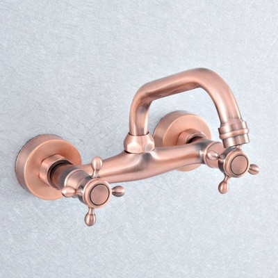 Antique Copper Faucet Bathroom - Lightinthebox.com Antique Copper Kitchen Faucet,Black Wall Mounted Standard Spout Rotatable Two Handles Two Holes Traditional Kitchen Taps with Hot and Cold Switch and Ceramic Valve.