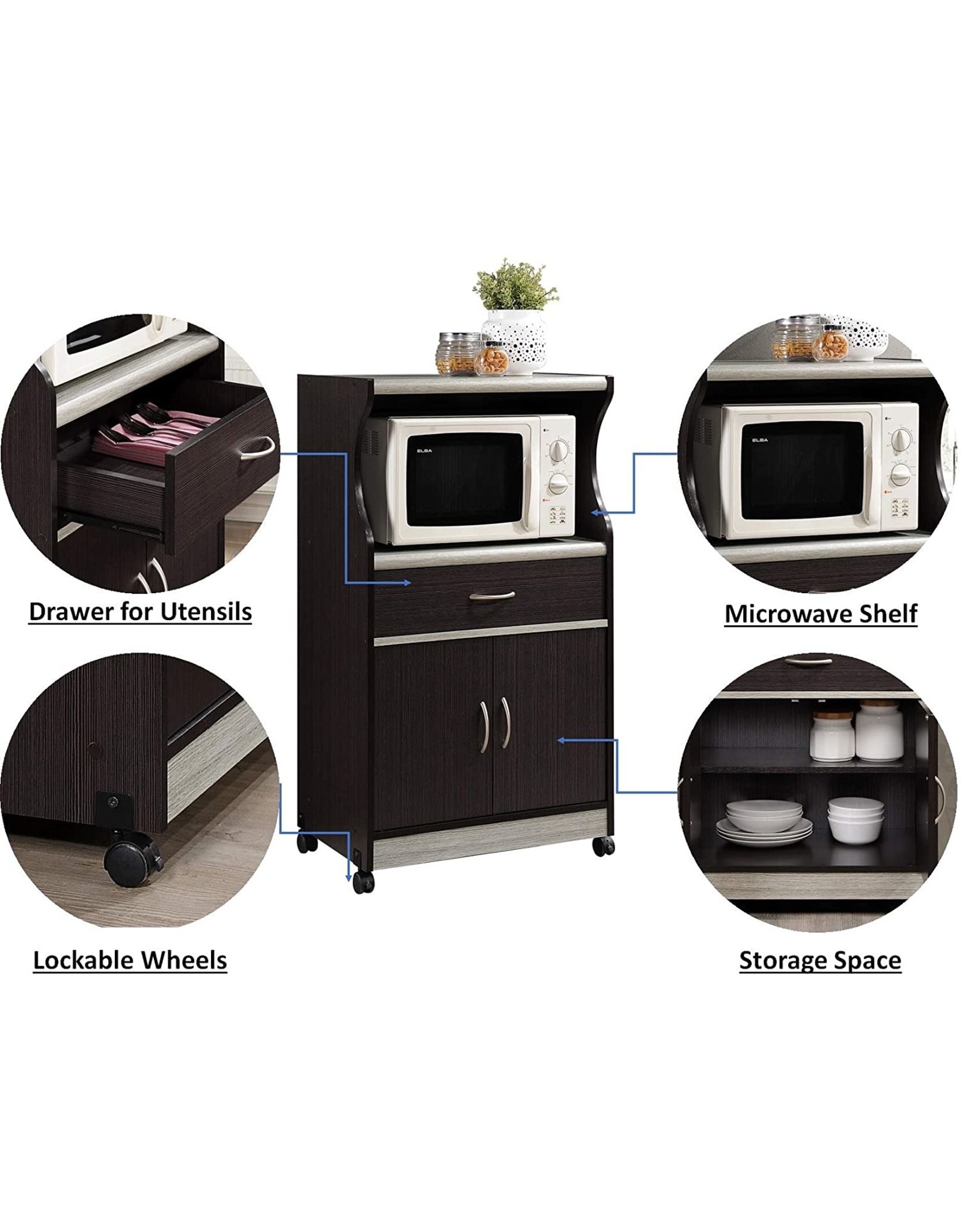 Microwave Carts Hodedah Wheeled Kitchen Microwave Cart with Drawer and Cabinet Storage, Cherry. 1763.7 out of 5 Stars. Multi-Shelves Storage Rack Industrial Kitchen Bakers Rack Utility Microwave Oven Stand Shelf Cart with 7 Hooks ,Simple Assembly,Rustic Brown.