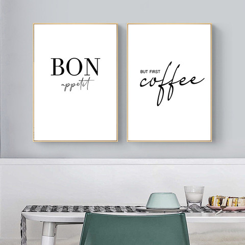 Minimalist Good Food Good Mood Bon Appetit Quotes Canvas Painting Black White Wall Art Poster Print Pictures Kitchen Home Decor