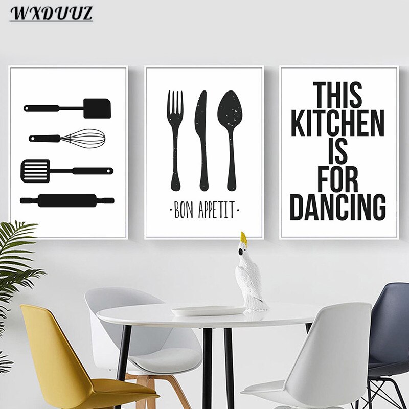 Nordic Simple Black White Tableware Art Decor Picture Kitchen Restaurant Wall Decor Quality Canvas Painting Poster Home Decor