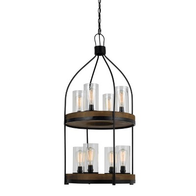 Сельский дом стеклянные люстры и потолочные... | eBay The Gray Barn Vineyard Metal and Wood 6-light Linear Chandelier with Glass Shade. Farm House Faux wood clear glass drum pendant light, New, open box.