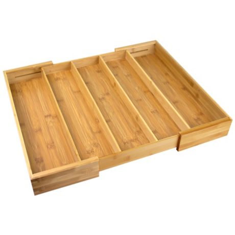 Seville Classics Bamboo Expandable 5 Large Compartment Adjustable Cutlery Drawer Tray ... Tidy up drawers in your home with Seville Classics' 5-Compartment Bamboo Expandable Cutlery Drawer Tray Organizer. Tray has three static compartments and two that expand on either side. Built from sustainable, durable bamboo. Our tray is an eco-friendly alternative to plastic and hardwood utensil trays and drawer organizers.