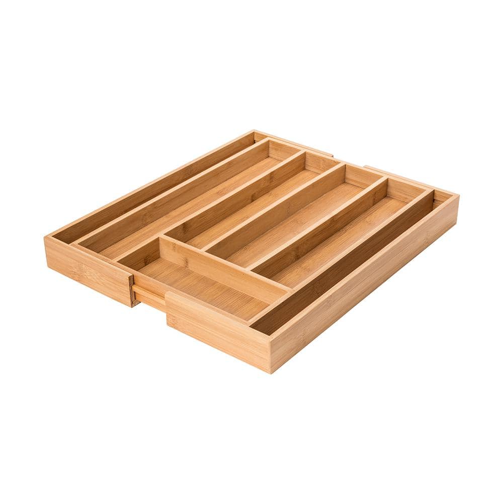 Amazon.com - Honey-Can-Do KCH-01079 Bamboo Expandable Cutlery Tray, Bamboo Large ... Bamboo Cutlery Tray Expandable Features Made from sustainable and renewable materials 7 total compartments for use Extends from 13.75" to 23" wide Gentle on utensils and will not scratch or leave marks on silverware Description Description Your kitchen utensils drawer is starting to resemble a junk drawer.
