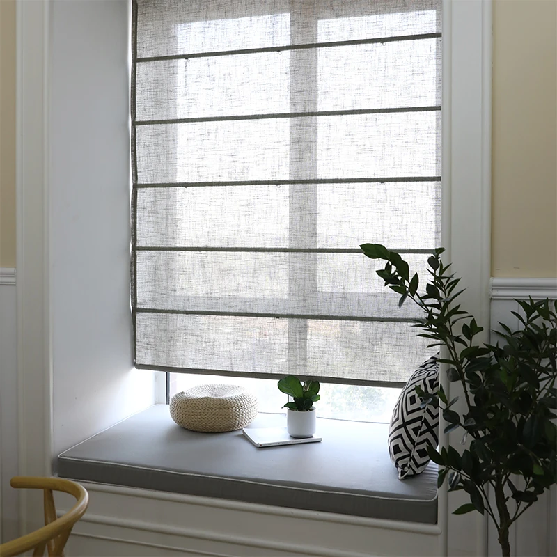 Roman Shades Window Shades, Grey Pattern Blackout Light Filtering Custom Window Roman Blinds, 10% Linen Fabric Roman Shades for Windows, French Doors, ...