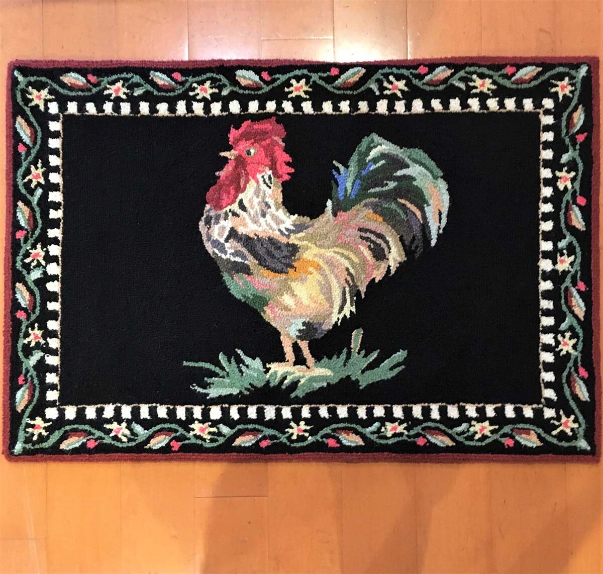 Cushioned French Country Rooster Rug | Collections Etc. exclusive Cushioned French Country Rooster Rug Item #33621 $15.99 $17.99 Save up to 11% Add to Cart Product Description Beautiful cushioned rug features delightfully detailed roosters atop a burgundy background. The bold black border includes colorful sunflowers and greenery.