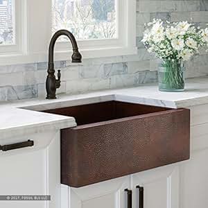 Heavy 12-Gauge Luxury 30" Dark Copper Farmhouse Sink ... - Fossil Blu Luxury 30 inch Copper Farmhouse Kitchen Sink, Heavy 12-Gauge Copper, Hammered, Dark Antique Finish, Single Bowl, Flat Front, includes Grid. Fossil Blu copper sinks are DISPOSAL READY with included copper-plated 304 stainless disposal flange and stopper. Also included with each sink is a CUSTOM-FITTED copper-plated 304 stainless basin rack (sink ...