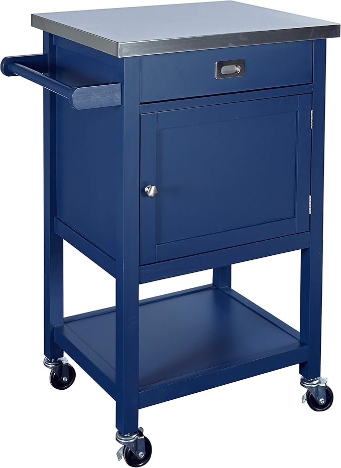 Amazon.com: Contemporary Kitchen Cart with Stainless Steel Top and Casters Blue Modern Wood ...
