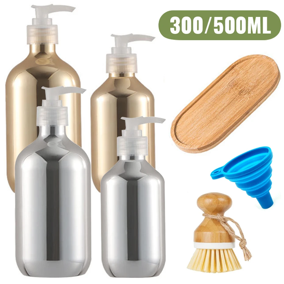 Silver Pump Soap Dispenser Kitchen Dish Soap Bottle Bathroom Shampoo Lotion Press Liquids Leak-Proof Empty Bottle 300/500ML