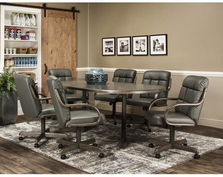 Caster Dinette Sets: Dining Table Set with Swivel Caster Dinette Chairs Dinette Sets with Caster Chairs Elegance and functionality all rolled into one with our high quality dining tables with swivel and tilt caster chairs. Our dining tables offer flexibility when it comes to style choices in many different shapes and sizes to choose from.