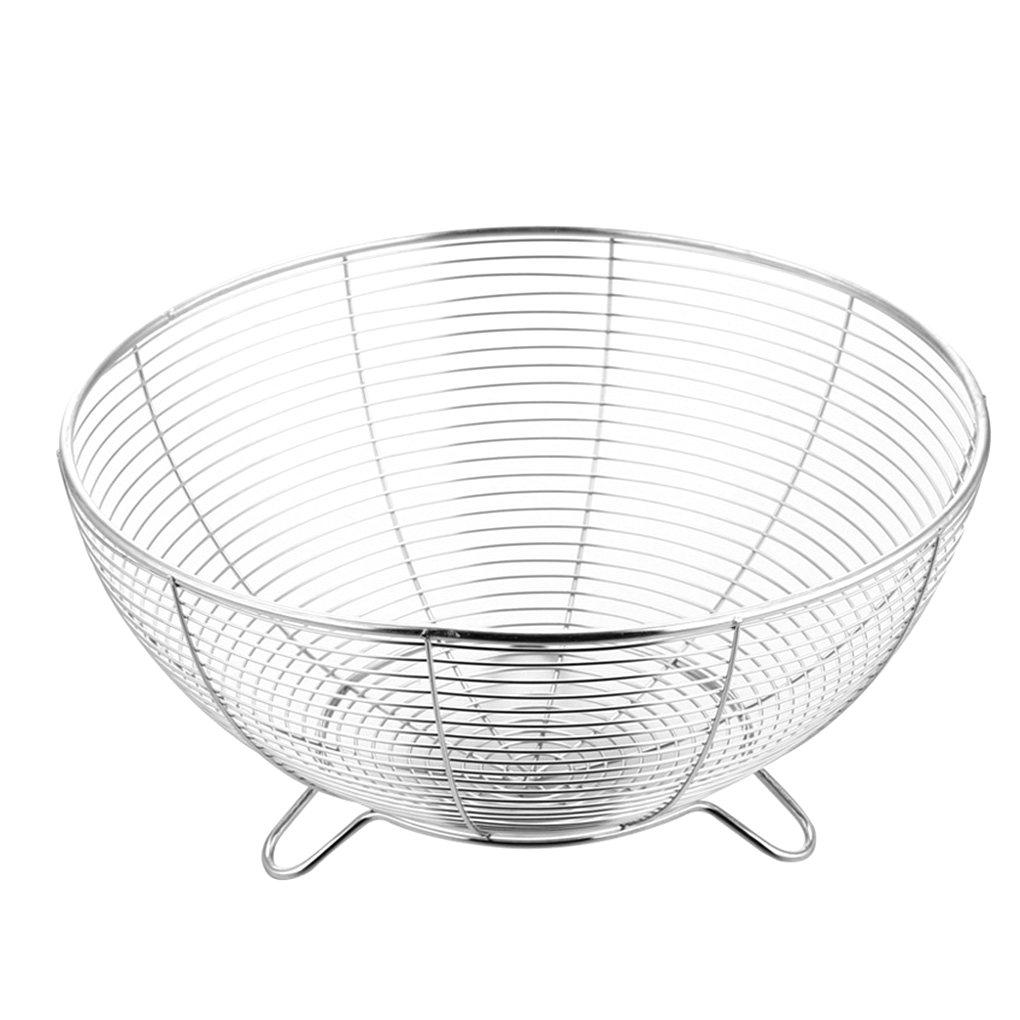 201 Stainless Steel Fruit Basket Hollow Fruit Bowl Multipurpose Metal Wire Storage Basket for Living Room Office Kitchen