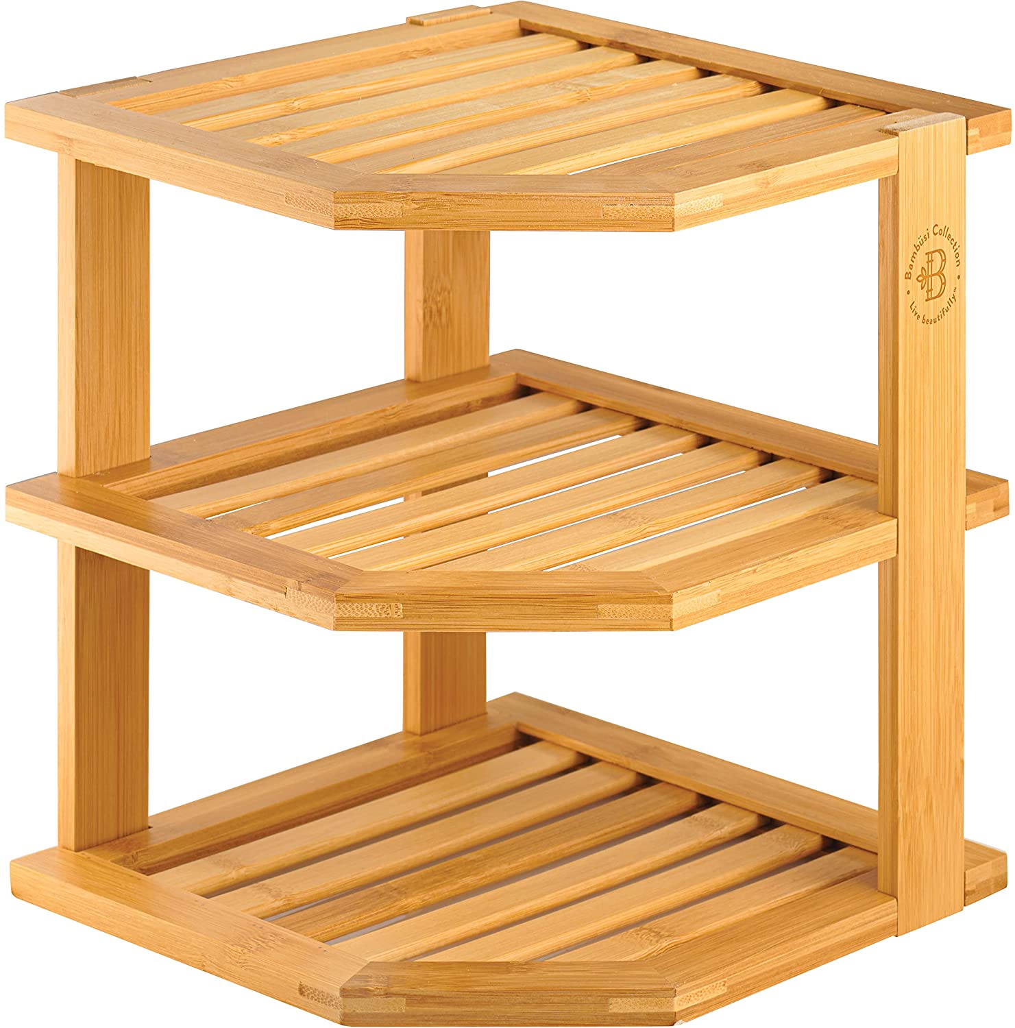 Amazon.com: Kitchen Countertop Corner Shelf: Home & Kitchen Corner Shelf, 3 Tier Kitchen Counter Shelf, Vintage Wood Counter Top Organizer, Adjustable Spice Rack, Counter Storage Organization for Kitchen, Bathroom, Office, Rustic Brown 194 $2499 $32.99 FREE delivery Sat, Oct 8 on $25 of items shipped by Amazon Or fastest delivery Wed, Oct 5 Bamboo Corner Shelf - 3 Tier 10 x 10 inch and 11.5 inches high.