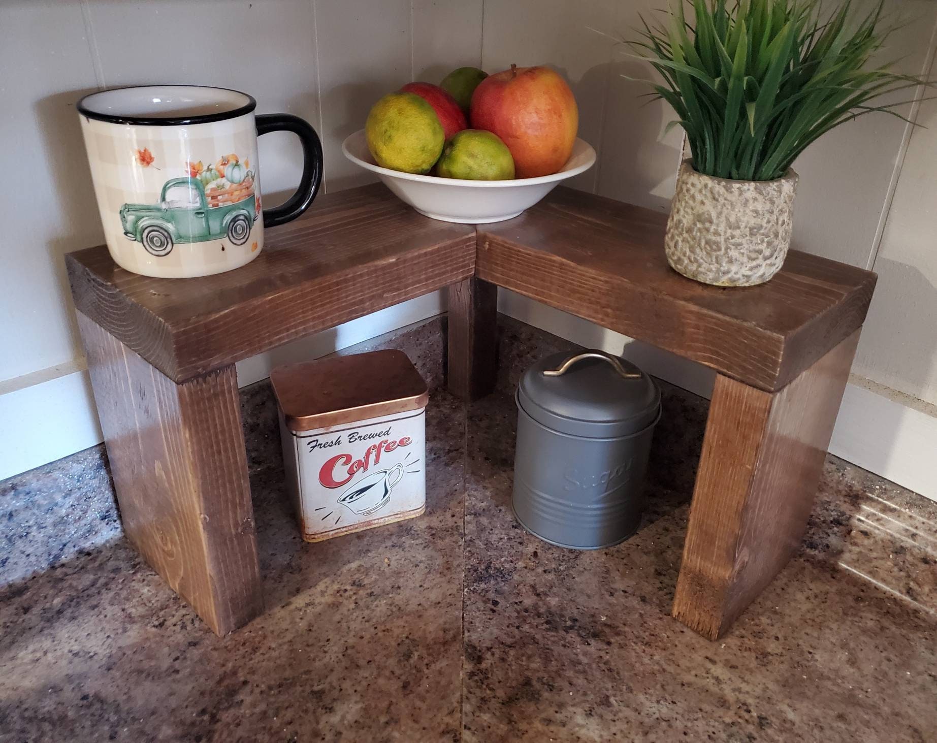 Kitchen Counter Corner Shelf - Etsy Kitchen Counter Corner Shelf, Rustic L-Shaped Shelf, Kitchen Storage, Farmhouse Shelf, Kitchen Decor, Organization Home Decor, Counter Shelf MyFarmhouseEssential (261) $82.99 FREE shipping Corner Shelf 3 Tier, Countertop Organizer, Kitchen Space Saver, Wood Coffee Bar, Office Display, Spice Rack, Rustic Canister Riser SunandMoonDesignsAZ (174)