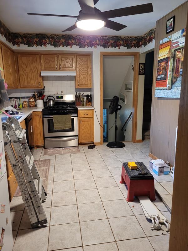 Ceiling fan in kitchen. Ceiling Fans With Lights - Ceiling Fans - The Home Depot Some of the most reviewed products in Ceiling Fans With Lights are the Hugger 52 in. LED Indoor Brushed Nickel Ceiling Fan with Light Kit with 8,853 reviews and the Merwry 52 in. Integrated LED Indoor Matte Black Ceiling Fan with Light Kit and Remote Control with 4,115 reviews. Kitchens Ceiling Fans at Lowes.com Show 3854 Results. Mac II 52-in Brushed Nickel Color-changing Indoor Flush Mount Ceiling Fan with Light Remote (3-Blade) Boltz II 52-in Brushed Nickel Color-changing Indoor Downrod or Flush Mount Ceiling Fan with Light Remote (4-Blade) AireDuo 48-in Brushed Nickel Color-changing LED Indoor Ceiling Fan with Light Remote (2-Blade) Ceiling Fan Size Guide - How to Measure and Size a Fan for Any Room The size of a ceiling fan is determined by the size of the room. In order to determine the square footage of the room or the area, multiply the length of the room in feet by the width of the room in feet. Your totals from this calculation is the size of your room in square feet. For example, if your room is 8' by 8', the square footage is ... Is there a reason I should NOT install a ceiling fan in my kitchen? I installed a ceiling fan in the kitchen of my house when I moved in. In ten years, I hardly ever used it. It blows things off the counters and throws dust around (and into) your food. I'm prepping the house for sale and have removed the ceiling fan so that I can install it in the bedroom of my new house where it will be much more useful.