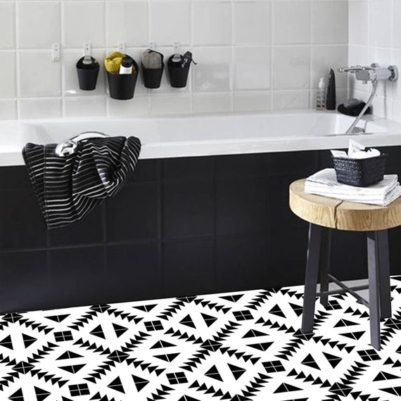 Black & White Pattern Matte Surface Floor Sticker Adhesive Tile Decoration Film For Tiles /Ground in Kitchen Bathroom Non-slip