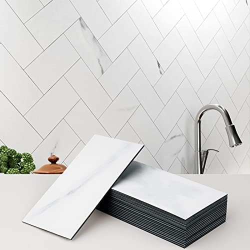 Stickyart Off White Peel and Stick Backsplash Tiles 3"x6" Self Adhesive Faux Marble Subway Tiles for Kitchen Bathroom Waterproof Self Stick Not Busy ...