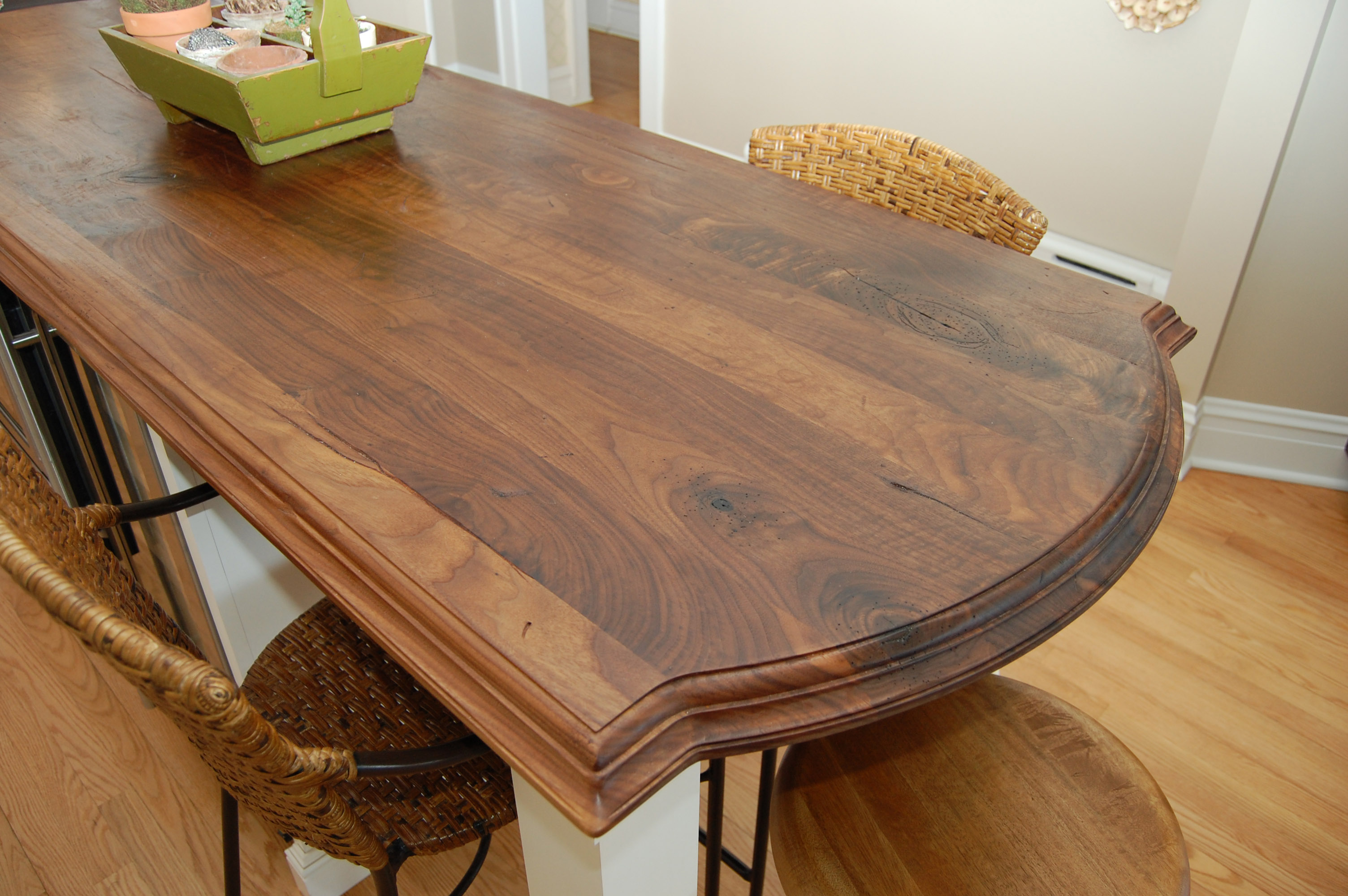 Pros And Cons Of Wood Countertops | a cool little town Pros Of Wood Countertops. Here are some great things about wooden countertops. The Look Of Wood. Wood is a very popular material among people. People love the look of wood, so it is only natural that it looks great as a countertop. Wood warms up any room in which it is installed and it makes the room look more cozy and welcoming.