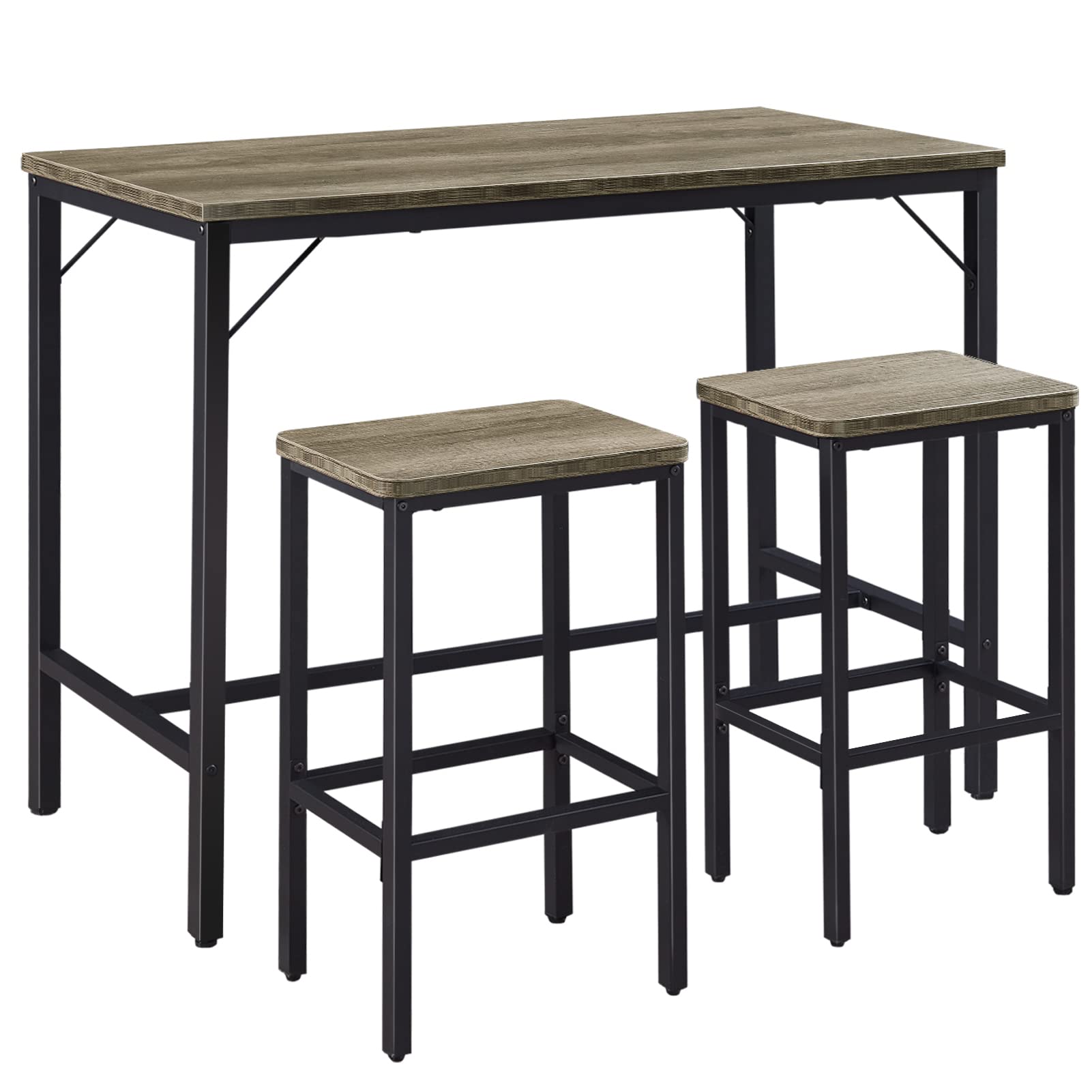 SUPERJARE Bar Table Set, Bar Table and Chairs Set, 3-Piece Dining Table Set, Bar Height Counter with 2 Stools, Industrial Breakfast Table Set for ...