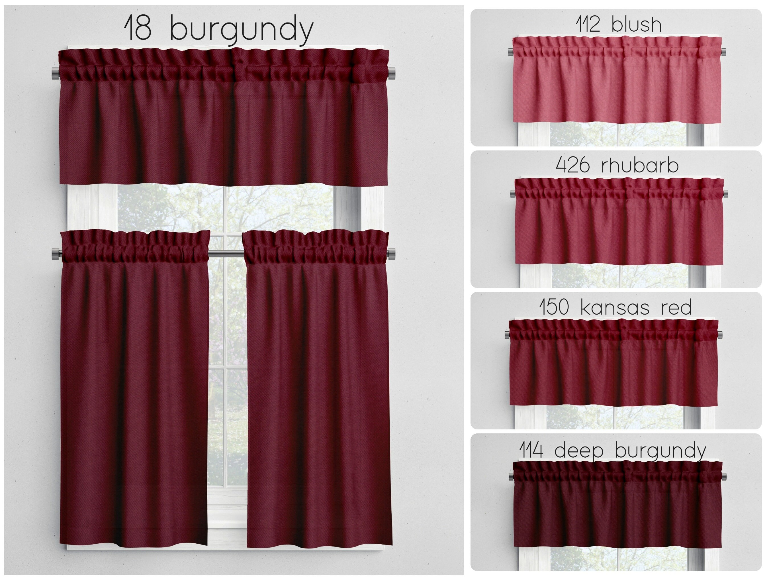 Kitchen Curtains, Tiers and Valance Window Treatments - Touch of Class Brown kitchen curtains and valances, meanwhile, are perfect for your own little rustic cafe. If your room could use some visual interest, red kitchen window treatments are just the thing. Pull it all together with wine-colored cushions for your dining chairs and bench seat.
