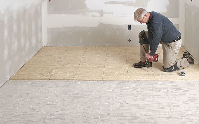 How to Install Ceramic Tile on Sub Floor: 6 Steps (with Pictures) Lift one sheet (leave the rest in place) and spread thinset directly onto the subfloor filling the area left by the sheet (use a 1/4" x 1/4" notch trowel). Once you have filled the space place the sheet down onto the thinset. Secure the cement board with the screws using the pattern directed by the board manufacturer.